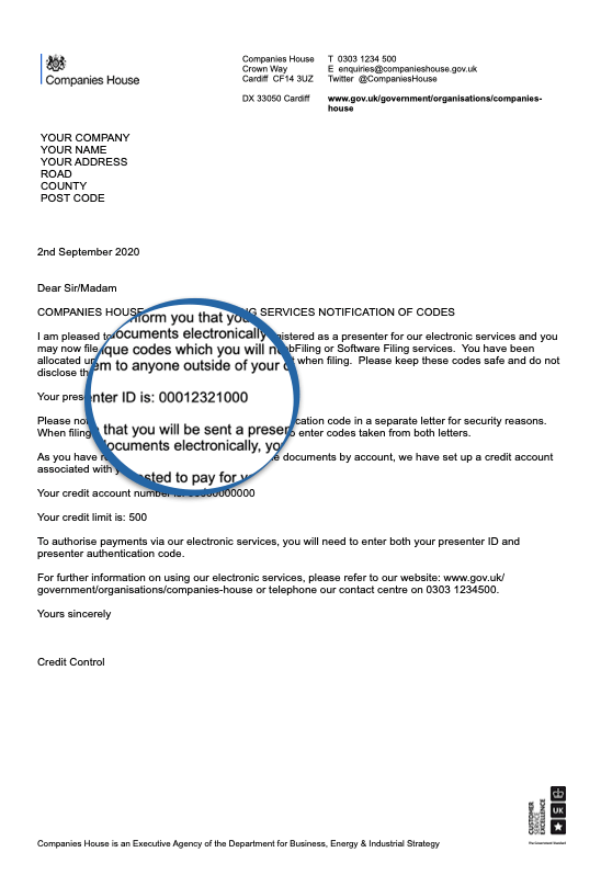 - Companies House will allocate a presenter identifier and presenter authentication code