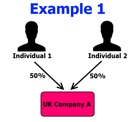 In Example 1, Company A has two shareholders, each holding 50% of the shares.