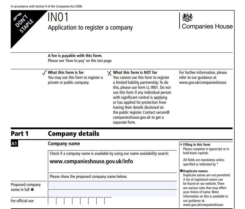 - Articles of association (if none are submitted then the model articles of association will apply automatically).