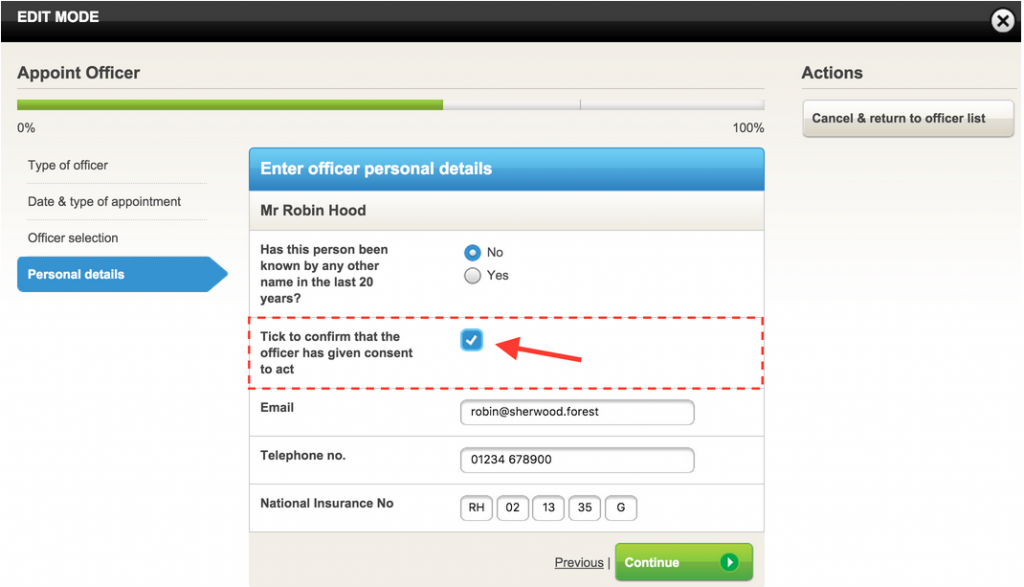 A further benefit of the Consent to Act template is that it also prompts the individual (or corporate body in the case of corporate officers) to provide all the other information required to successfully file an appointment with Companies House.