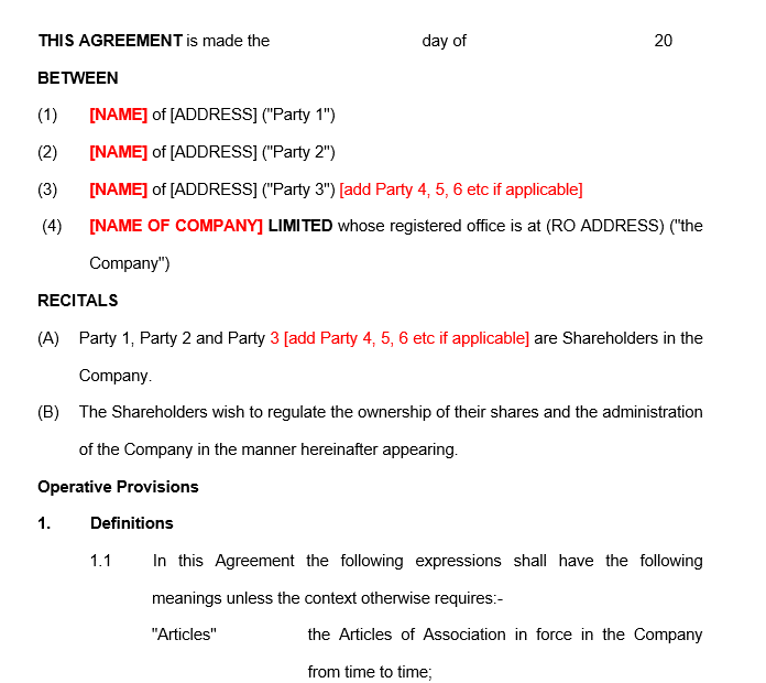 - Providing some protection to holders of less than 50% of the shares – including requiring certain decisions to be agreed by all shareholders.