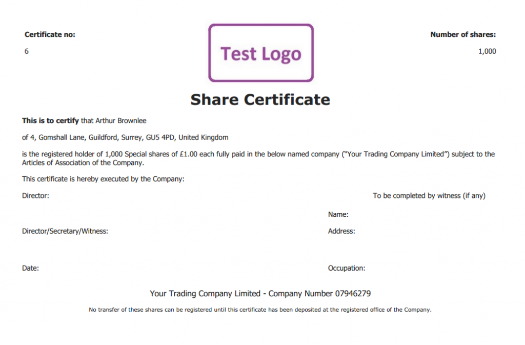 Our share certificate template is free to use and you can upload your company logo to produce branded share certificates if you’d like to. You can make share certificates for transfers or allotments you’ve done before starting to use Inform Direct so can catch up with any certificates you need to create.