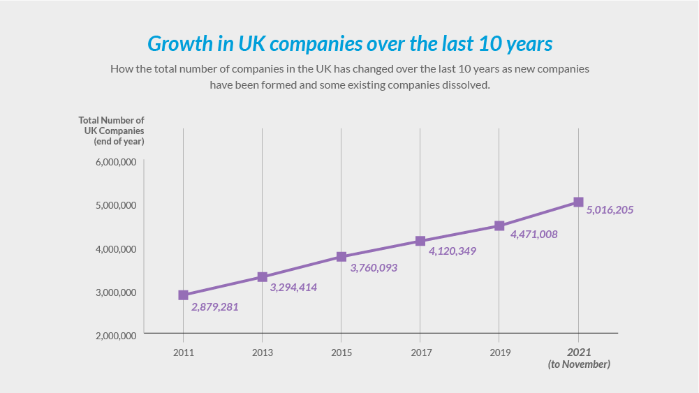 At the end of November this year, the official Register of UK Companies reached a new record high with over 5 million companies.