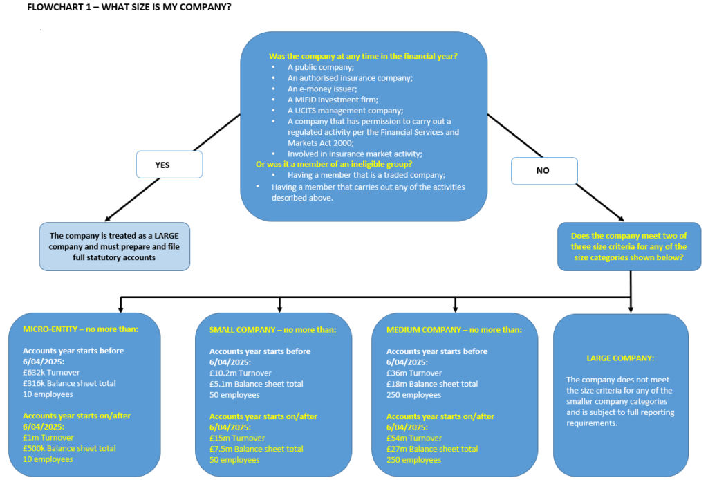 To help you through the decision process, this article contains two simple flow charts to walk you through the factors you should consider when determining both the size and the eligibility of your company. However, if in doubt, we would always advise you seek further guidance from an accounting professional.