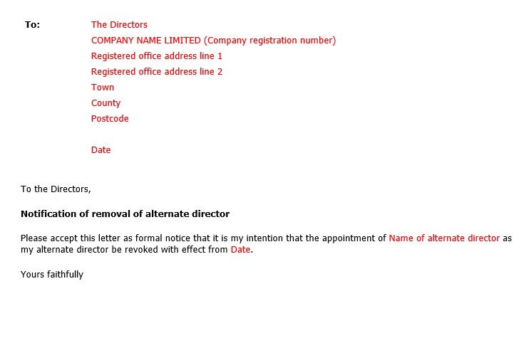 A letter from a director to the company informing them that they wish to revoke the appointment of an alternate director.
