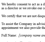 This template can be used to record the consent to act when appointing a new corporate director or director.