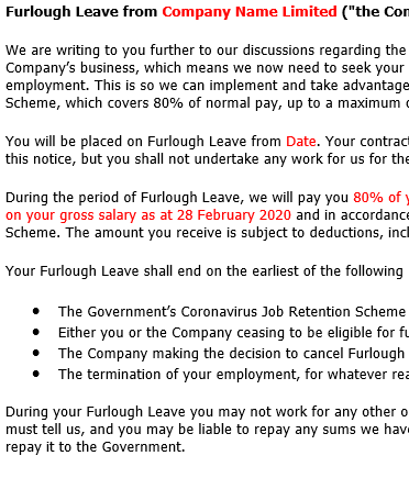 If a director or other employee is furloughed under the coronavirus job retention scheme, the company must give them notice, with employee's consent obtained for the amendment to their terms and conditions of employment