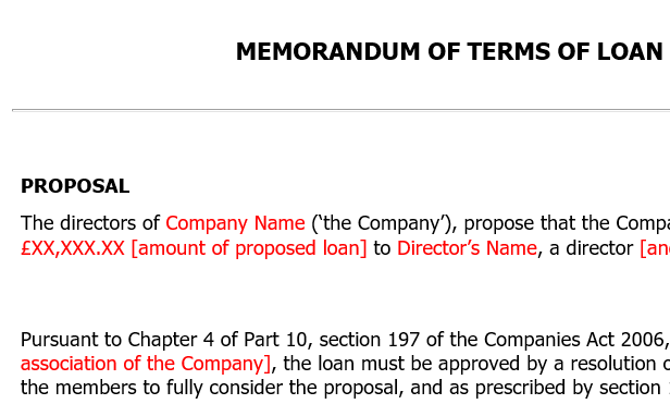 Where shareholder approval is required for a company loan to a director, this template memorandum can be tailored to provide details of the loan.