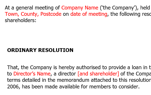 This template can be tailored to reflect the details of the proposed director's loan. It can also be used where shareholder approval is required for a company loan to a director.