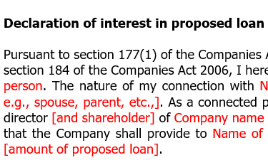 A written notice can be submitted to the company by a director wishing to declare their interest in a proposed company loan. The notice should be sent in hard copy or electronic form to the other directors.