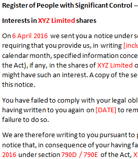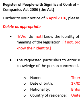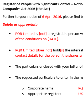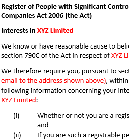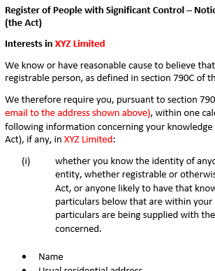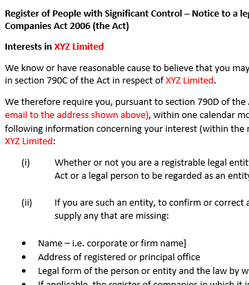 This template notice can be adapted to send to an individual, requesting they confirm their PSC status and - if they are a PSC - to provide various required details.