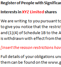 If someone doesn't respond to a formal request for information, the company may look to apply restrictions on shares or rights. As part of that process, the company must issue a formal restrictions notice.