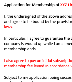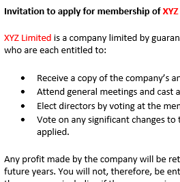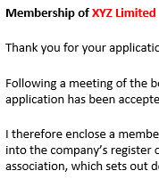 This templates sets out the main details of the company and what the person needs to do to apply to be a member of it.