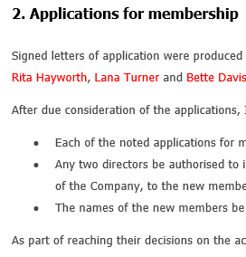 This template board minute can be amended based on your own meeting, but includes details of the board processing the applications for membership received.
