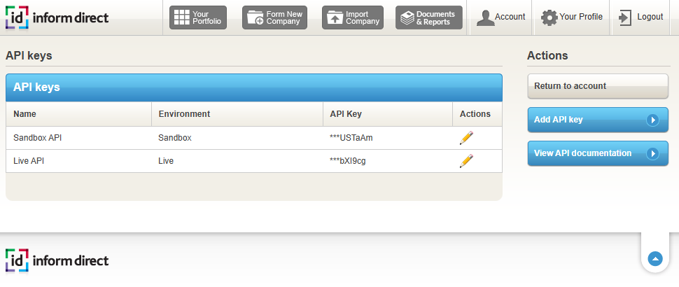 - Inform Direct’s public URL for the company (so you can directly link from another system)