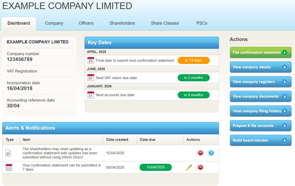 - If changes were made to shareholder details in the confirmation statement, you may need to enter them into Inform Direct if you haven’t already done so (without making duplicate filings).