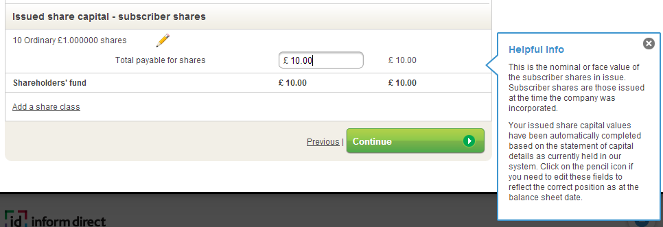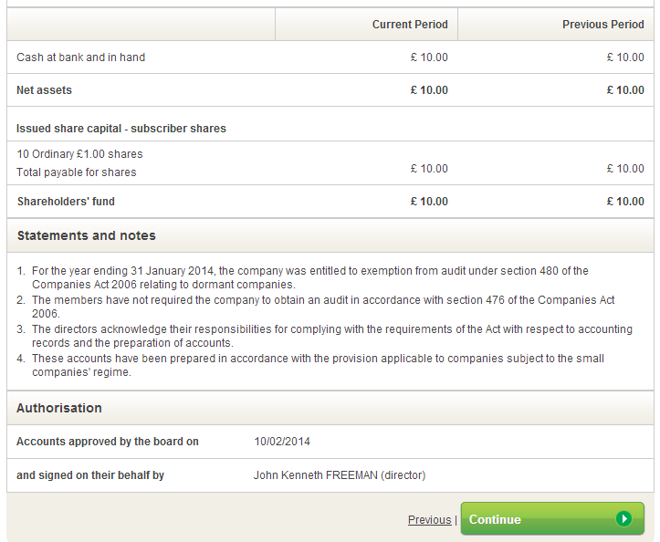 - Inform Direct provides the required balance sheet statements – just tick to confirm that they apply and enter the date the accounts were approved. From the list provided, select the name of the director that will be approving the accounts.