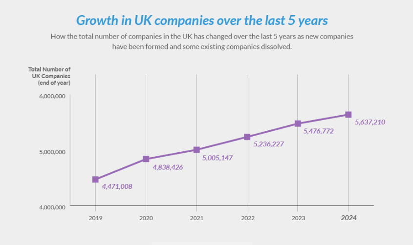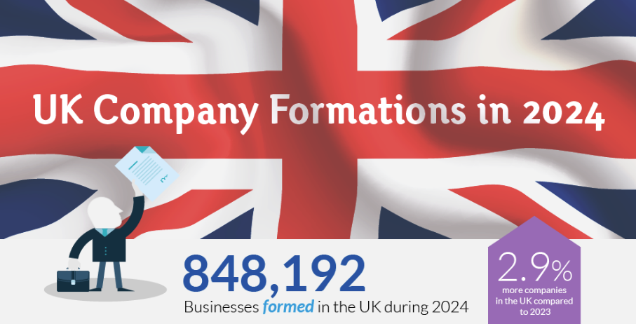 There were 848,192 new companies formed across the UK in 2024. Although somewhat short of the record set in 2023, this still represents an impressive performance and a testament to the resilience of UK entrepreneurs in the wake of a number of headwinds: