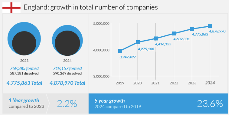 However, the total population of 5,637,210 companies at the end of 2024 is a new record, an increase of 2.9% compared to the end of 2023 and 26.1% up on five years ago.