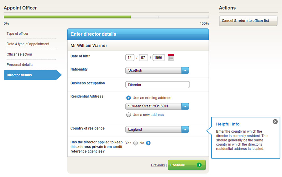 Straightforward wizards then guide you step by step through new appointments, making changes to existing officers and resignations. Help is available at each step, although we’re confident you won’t need it.