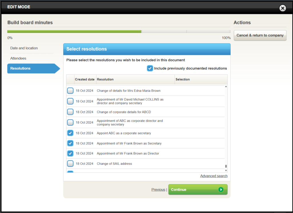 Whether you combine several changes set out in a busy board meeting into one comprehensive document or you need to document a single change, that you have forgotten to minute when completing a change, Inform Direct now makes the process straightforward and efficient.