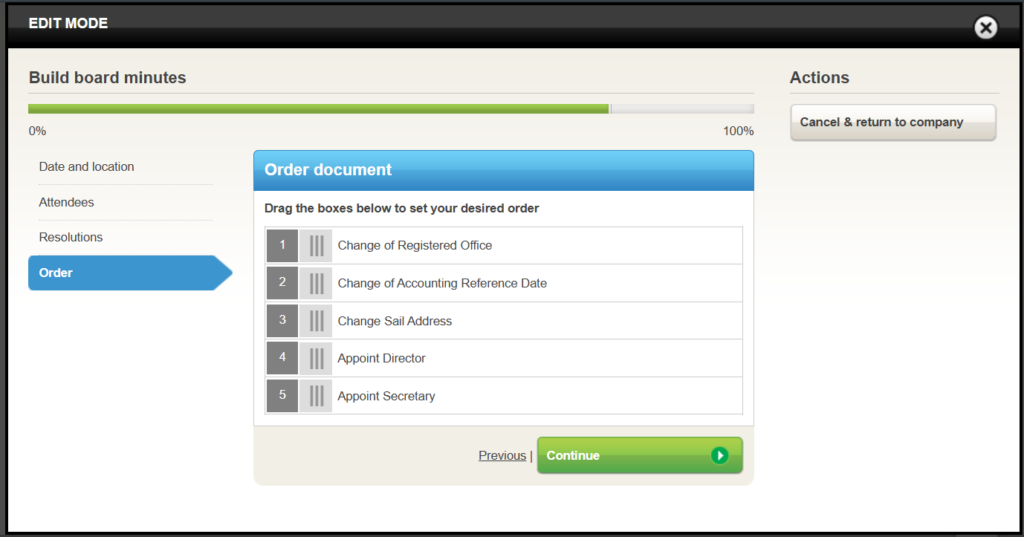 Our latest update allows you to create board minutes from your change history in Inform Direct from a company’s dashboard.