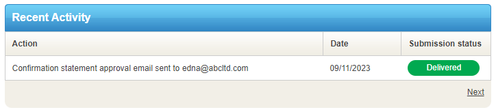 You will be able to see that this was successfully sent in the company’s recent activity (you will also get email confirmation). When the email is delivered, the recent activity will update to show that it has been delivered.