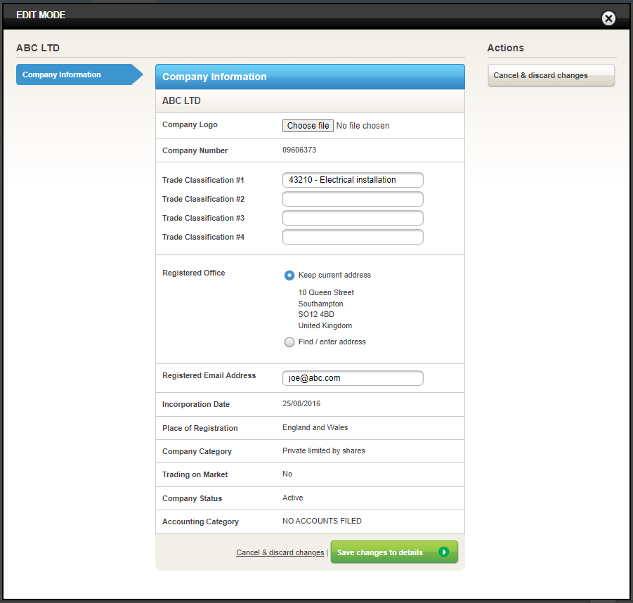 - The addition of a company’s ‘registered email address‘ in preparation for the upcoming Companies House changes as part of the Economic Crime & Corporate Transparency (ECCT) Act
