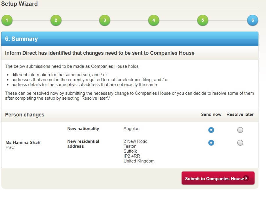 In line with requests from users we have made changes to allow you to import companies into Inform Direct without sending submissions to Companies House arising on differences in the personal details of individuals.
