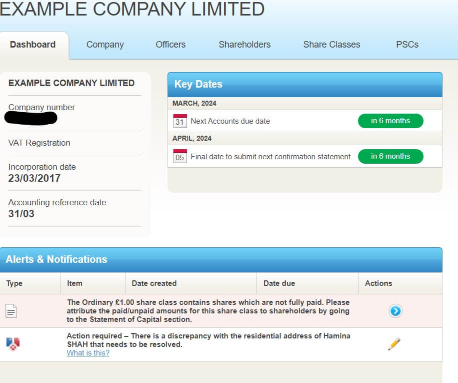 These notifications either provide you with the means to submit the changes to Companies House or explain the steps that you need to take:
