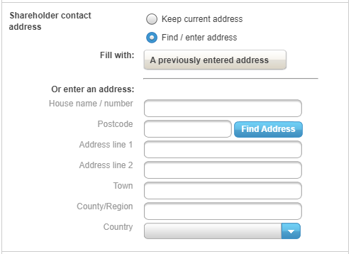 You will also be able to select the address just entered in the residential address field in the shareholder contact address lookup – and vice versa – if both are being updated at the same time to a new address.