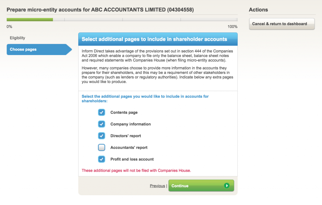 Inform Direct intuitively takes advantage of the provisions set out in section 444 of the Companies Act 2006 and only files the required pages with Companies House. The required pages are: