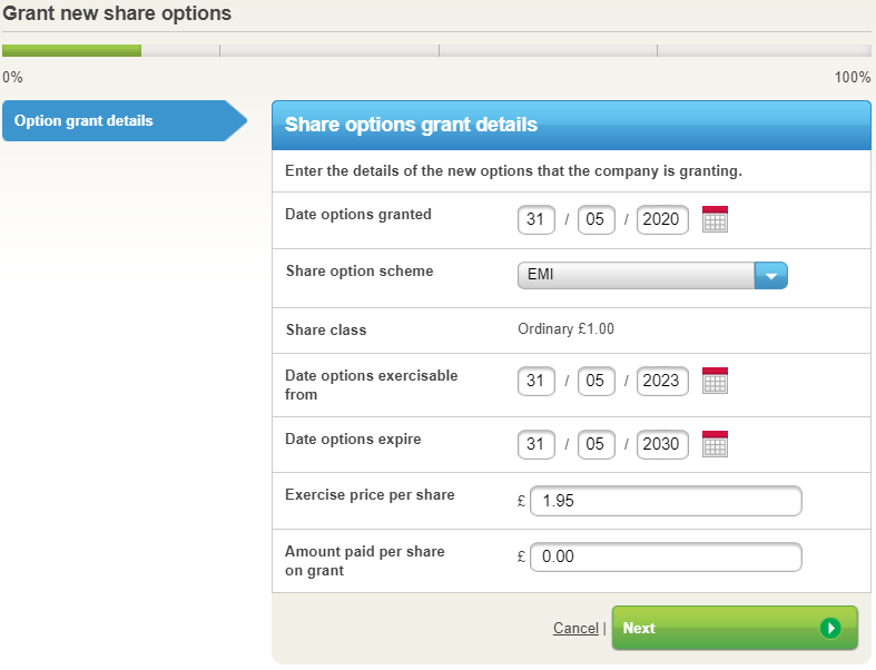 We have recently expanded Inform Direct so that you can now record share options in our online company secretarial system.