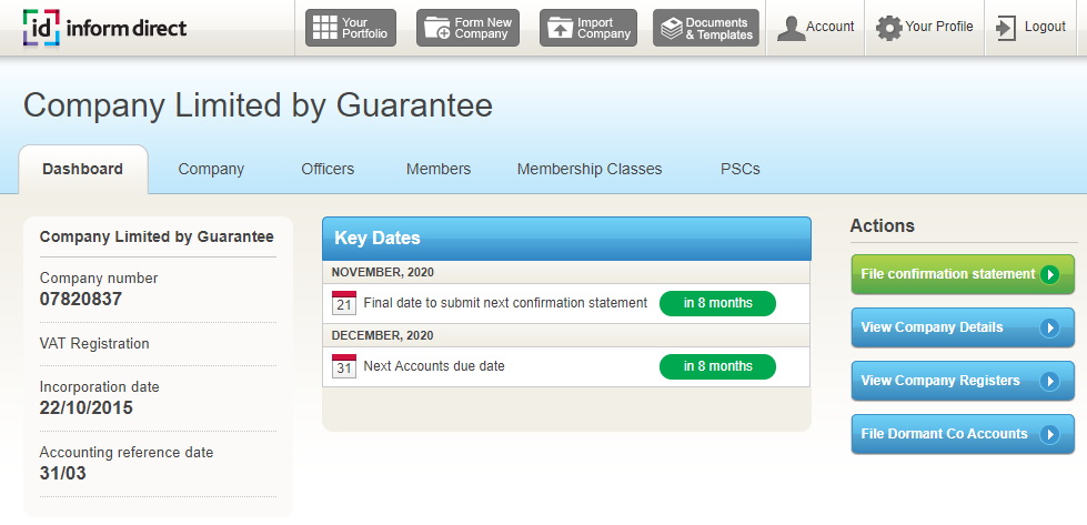 Just as for companies limited by shares you’ll now be able to file dormant company accounts for companies limited by guarantee. You’ll now find the ‘File Dormant Co Accounts’ option for such companies on:
