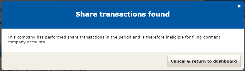 For example, if your company has completed some share transactions, it’s no longer eligible to file the ‘never traded’ version of dormant company accounts. If this is the case you’ll be told why when you select the ‘File dormant co accounts’ button.