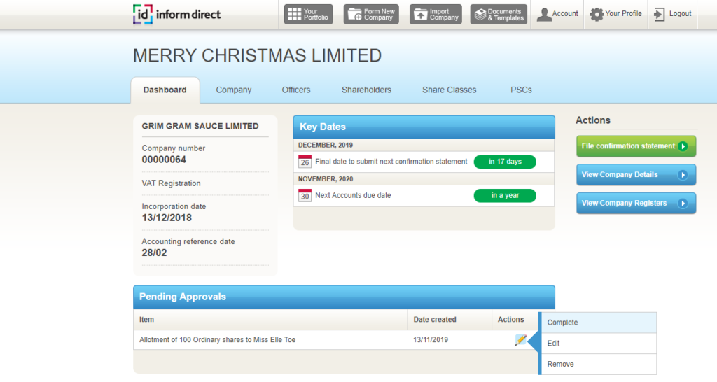 Once you receive approval of the information you can pick it up from where you left off – just 2 clicks and it’s sent to Companies House.