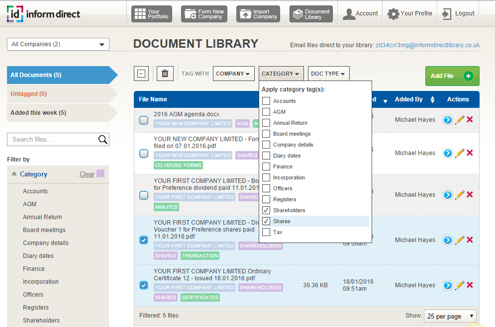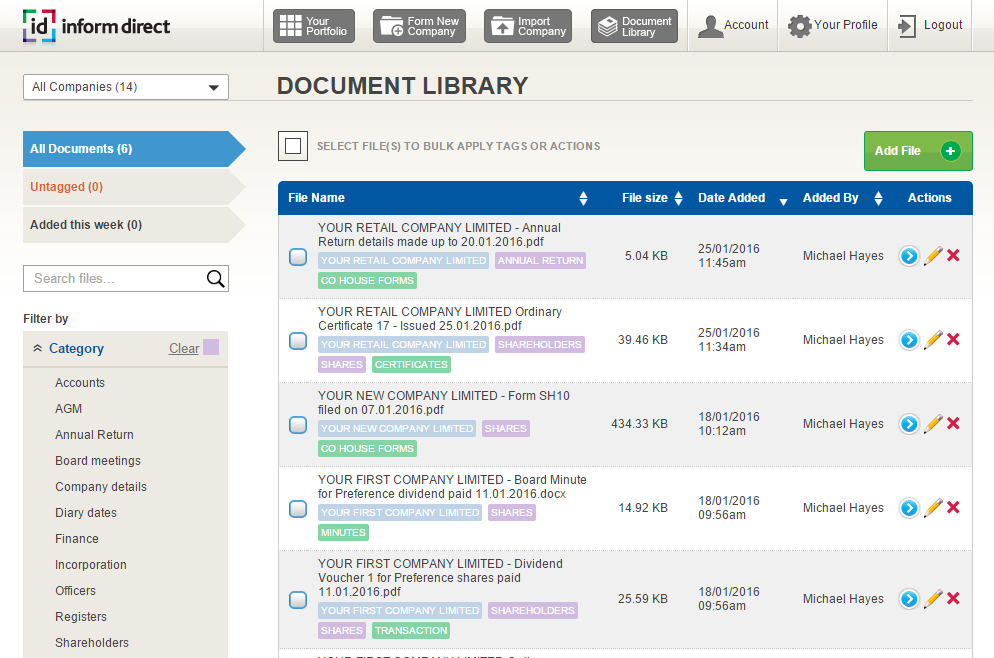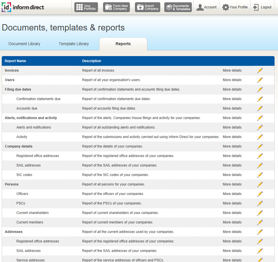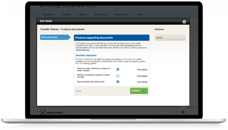 Inform Direct produces over 400 different documents related to an enormous range of company secretarial transactions. So whether you're making a share transfer, appointing a new director, moving the company's registered office address or undertaking a reorganisation of the company's shares, Inform Direct will produce the supporting documents you'll need...