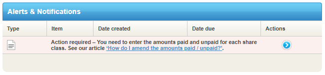 Following this update you will be able to import companies that have unpaid share amounts and multiple share classes. Once they are imported you’ll see a notification on the dashboard for that company reminding you to enter the unpaid amount per share class.