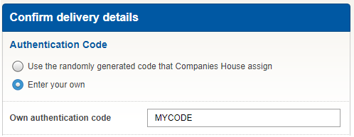 If you don’t want to set your own authentication code you can just leave it up to Companies House who will randomly assign one and send it back to us.