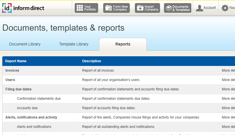 Download from Inform Direct reports of your clients' Companies House filing due dates to help you ensure that these are met.