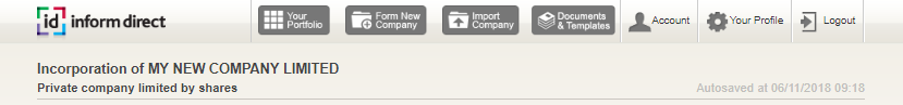 As you progress through the incorporation process the information you have entered will now be automatically saved with each step you complete. The top right of each step will tell you when the data was last saved.