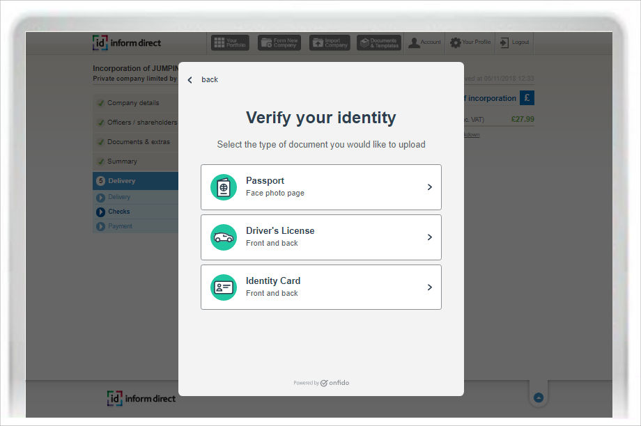 Since July 2017, when forming a company in the UK, AML checks are required. Since then our company formations had been restricted to those acting as an agent for formations. With this release, if you are forming a company of which you are a director (/LLP member) or person of significant control (PSC) then you will be able to complete the required AML checks electronically within the formation process in just a few minutes. All you’ll need is: