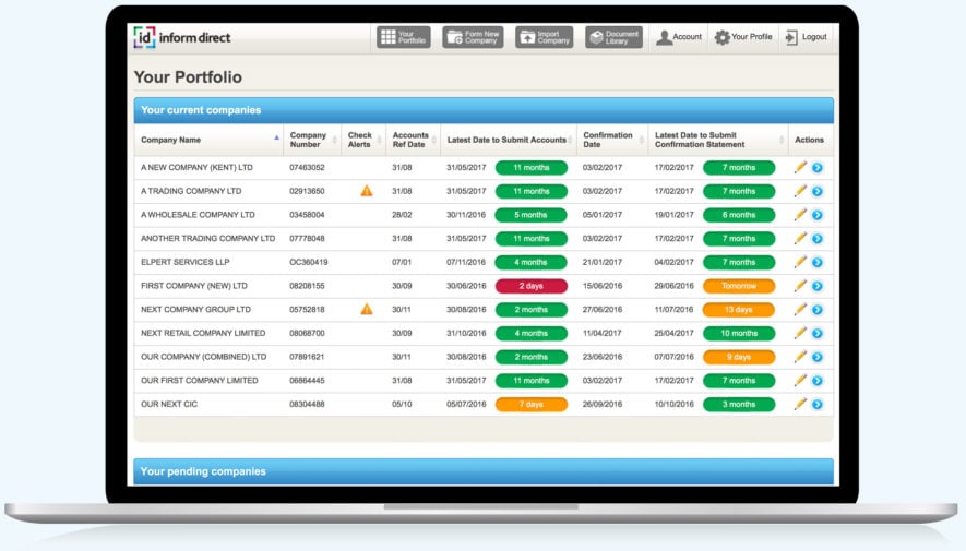 If you manage multiple companies, a single portfolio view consolidates the key data for them, so it’s easy to see which need action. For more than 10 companies you will need to subscribe.