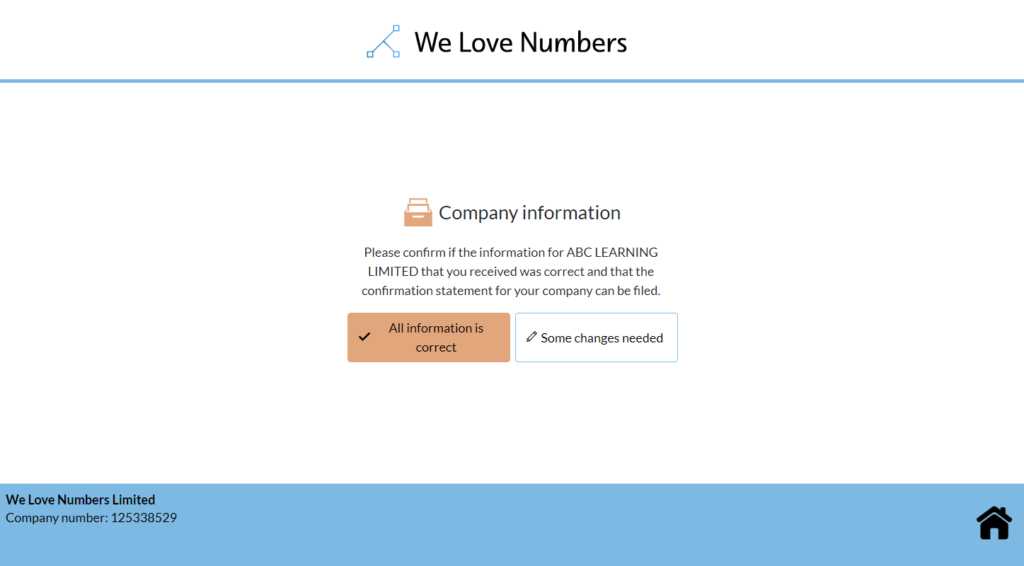 - Notify you that they have confirmed the information so that you can control the filing to Companies House