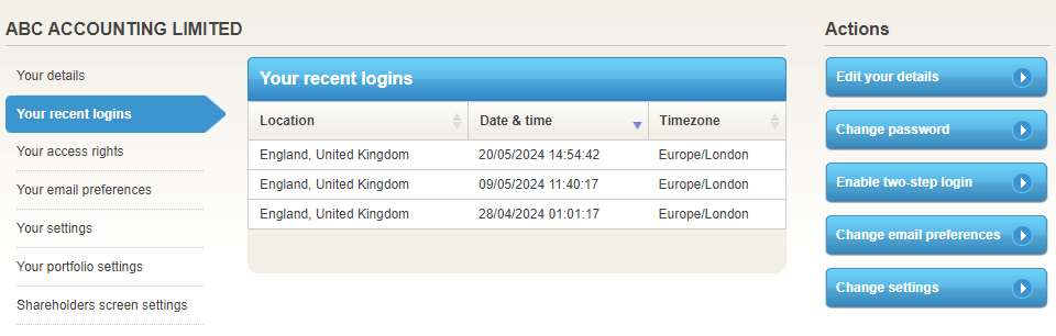 From the ‘Your profile’ area of Inform Direct you can now view the most recent logins to your user account, when they were and a rough location.