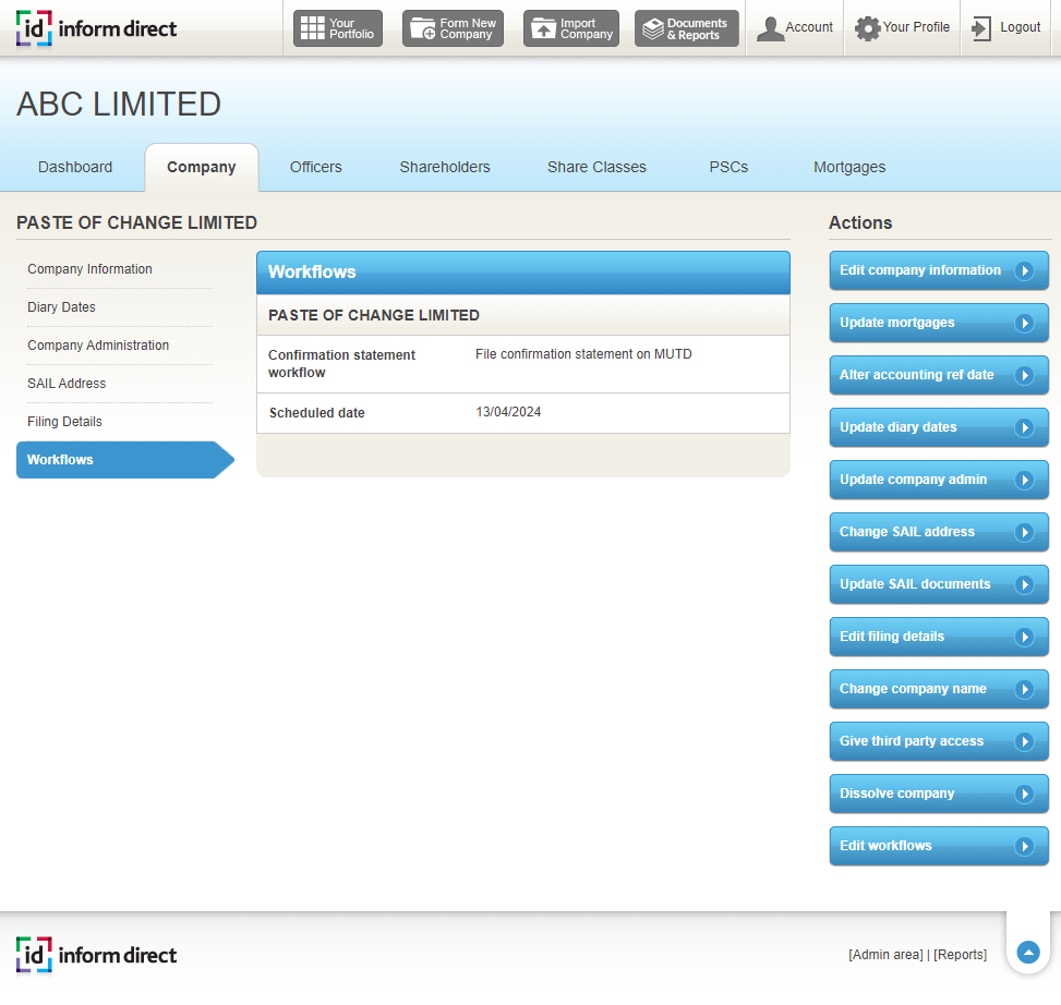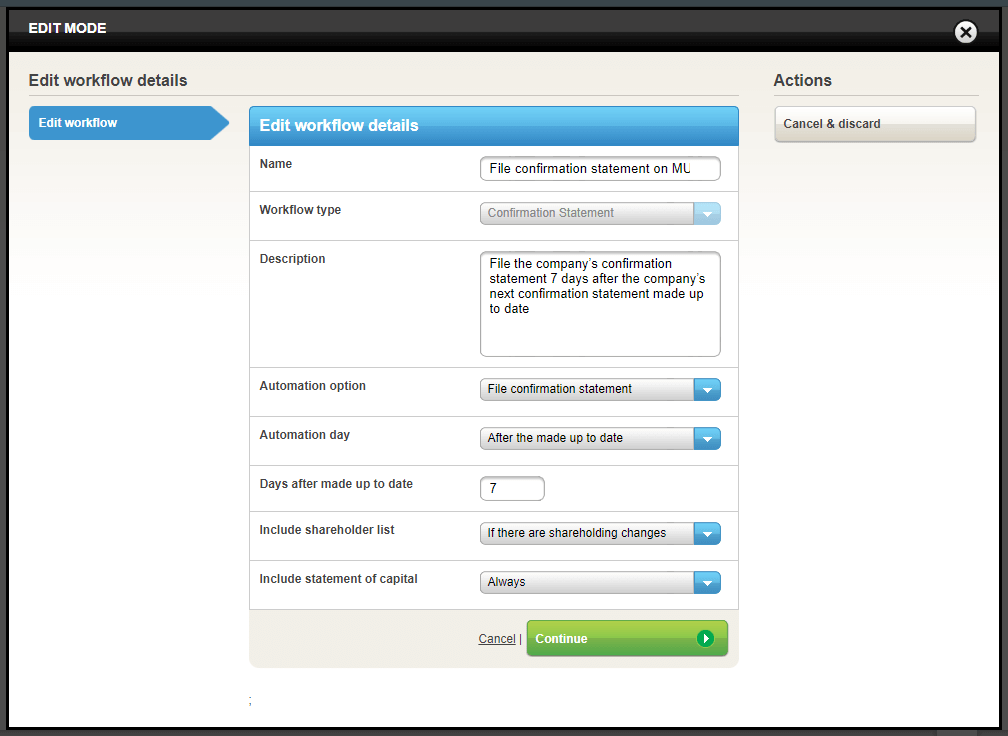 Each company can then be assigned the confirmation statement workflow that you would like to be enacted for that company.