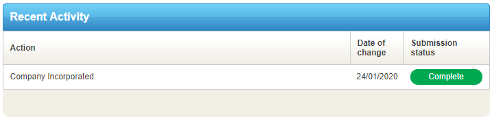 ‘Company Incorporated’ recent activity