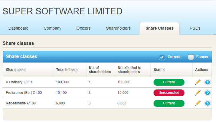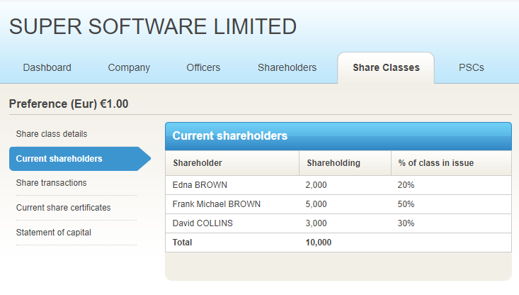 You can now view totals for the shares allotted to shareholders for any share class. This is very useful if you need to reconcile a share class as it will highlight the discrepancy between the number of shares allotted to shareholders in Inform Direct and the total number of shares in issue.
