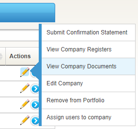 - A new ‘View company documents’ action is available from the portfolio screen which will display the documents in the document library for just the selected company.