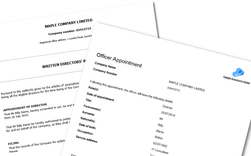 For these processes you are now able to generate the documents (board minutes, written resolutions etc.) and save them before sending any information to Companies House. A summary document of the change is also generated for each of the processes, which you can use to seek approval of the details.